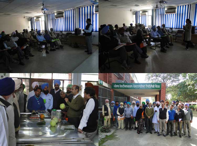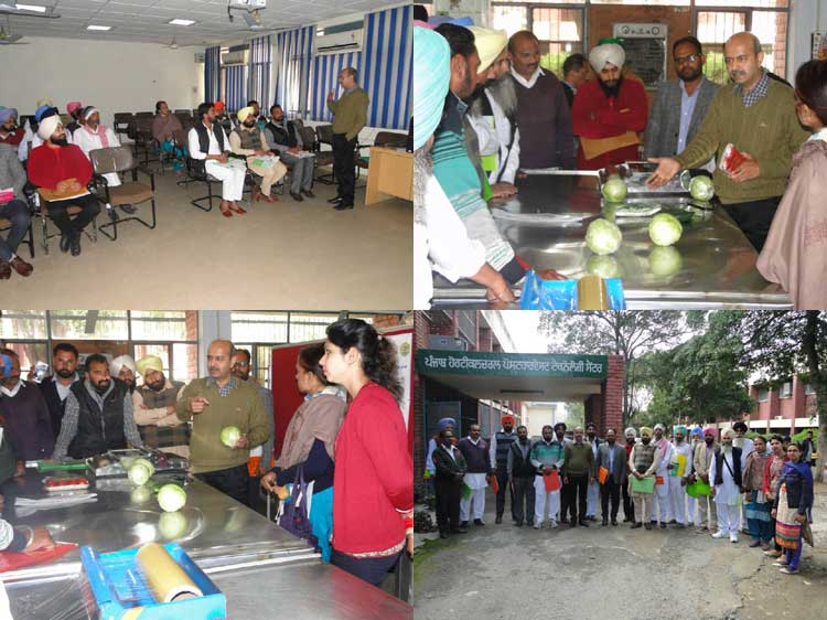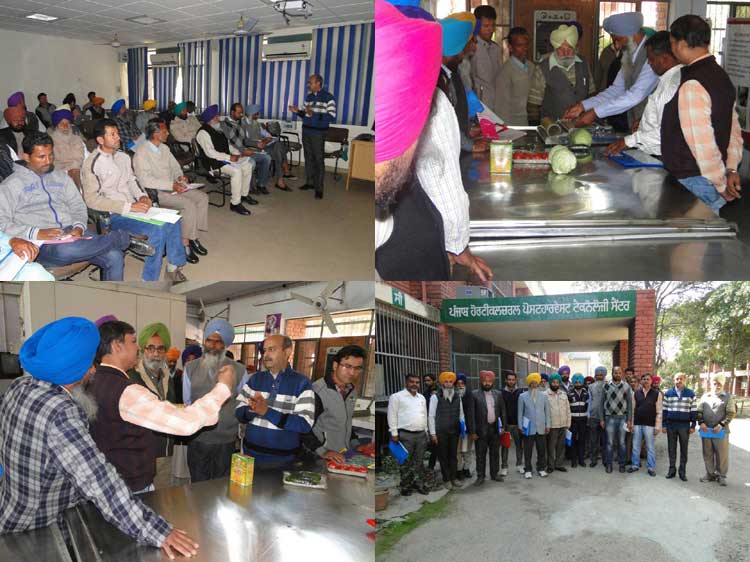 Punjab Horticultural Postharvest technology Centre, Punjab Agricultural University campus, Ludhiana organized a training programme on postharvest management of fruits and vegetables for farmers of Jalandhar and Kapurthala districts. About 25 farmers attended the training programme. The farmers were given hands on training on different techniques involved in harvesting, precooling, grading, packaging, storage and marketing of perishable produce. The farmers were also made aware of food safety act, its guidelines and its ultimate importance for human health. Dr BVC Mahajan, Director of this Centre told that horticultural crops are highly perishable and are bound to spoil if not handled properly after harvest. The possible reason for these losses is the non availability of adequate postharvest infrastructure at farm and market level and lack of awareness about postharvest handling practices. Therefore, there is need to educate farmers and marketers for careful handling of valuable horticultural produce so that postharvest losses can be minimized. This will result in ample availability of quality produce to the consumers in domestic and distant markets. This centre is going to conduct 12 training programmes each of one day duration for farmers of Punjab during February-March 2017 with financial assistance from National Horticulture Mission. Dr Mahesh Kumar, Dr Ritu Tandon and Dr Swati Kapoor will conduct the training programmes.