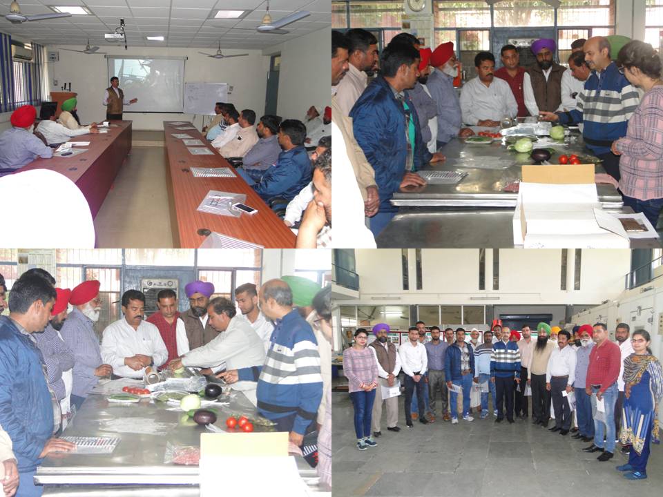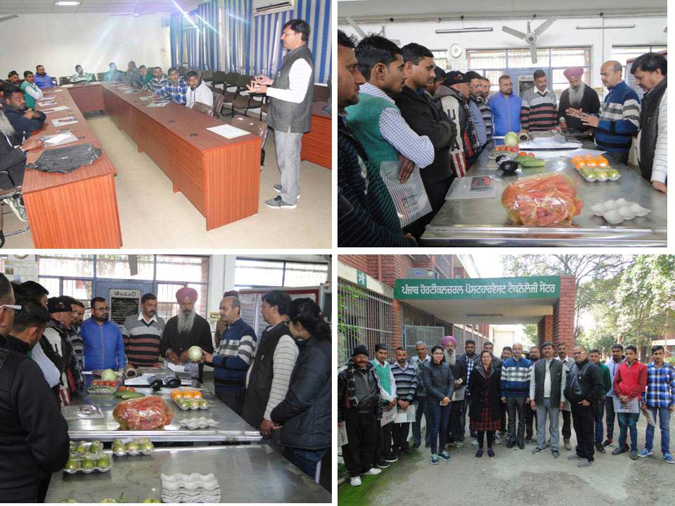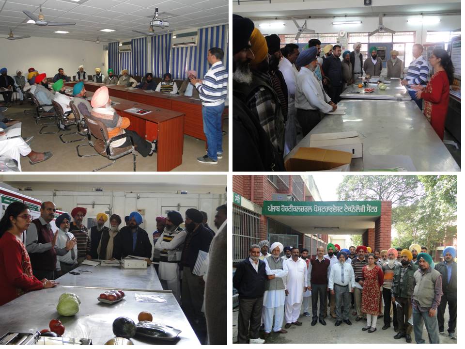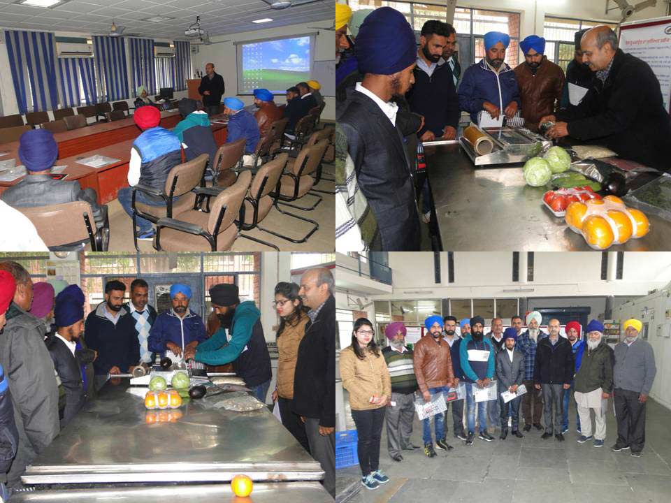 Punjab Horticultural Postharvest Technology Centre, P.A.U. Ludhiana organized Trainers Training Programme on postharvest management and marketing of fruits and vegetables for Apni Mandi farmers of Jalandhar district on 6-2-2018. About 20 farmers attended the training programme. The farmers were given hands on training on grading, packaging and storage of fruits and vegetables. Dr BVC Mahajan, Director of the Centre told that Apni Mandi is a very good concept started by Punjab Mandi Board with a view to give boost to small farmers around cities so as to provide direct access to the consumers by eliminating the middleman. This model helps not only in reducing the postharvest losses of perishable produce but consumers can enjoy the freshness of the quality produce and farmers can earn better profit as compared to wholesale market. He emphasized that farmers should follow grading and packaging of fruits and vegetables for better marketing. The participants were made aware of Food Safety Act, its guidelines and its ultimate importance for human health. Dr Mahesh Kumar, Dr Ritu Tandon and Dr Swati Kapoor of this Centre also gave tips for processing, value addition and maintenance of quality of horticultural crops during marketing. This Centre will conduct five similar training programmes each of one day duration for farmers of Apni Mandi from different districts of Punjab during February-March 2018 with financial assistance from Punjab Mandi Board.