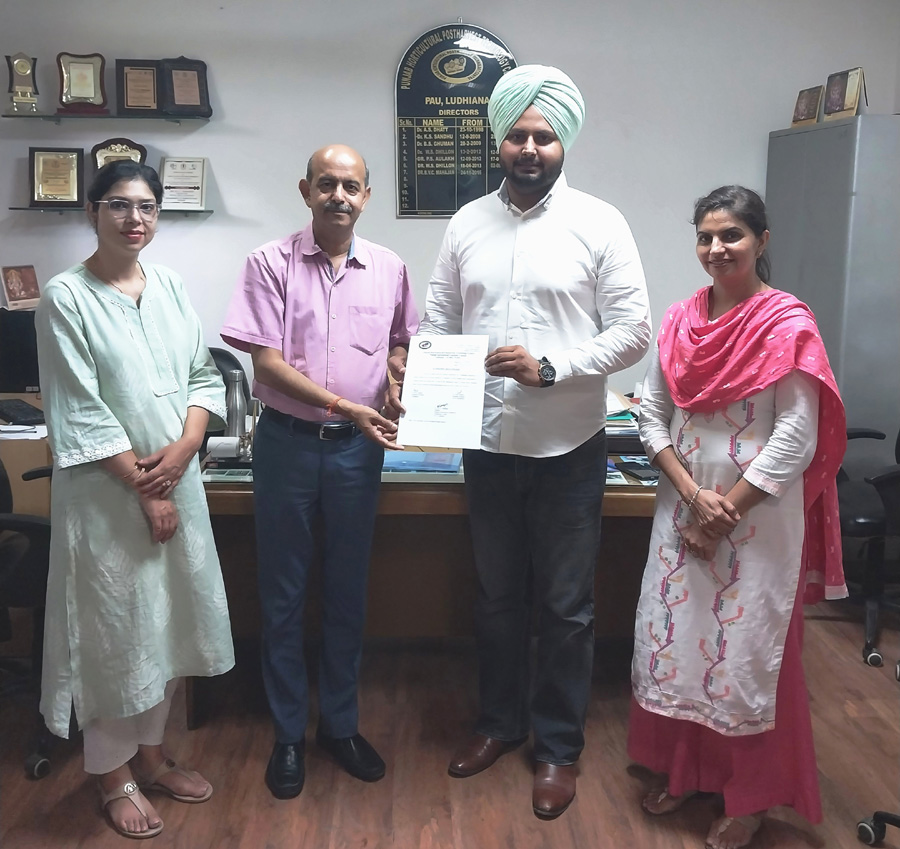 Punjab Horticultural Postharvest Technology Centre has recently provided the Technical Know-how for processing of whole Kinnow fruit to Mr. Babanpreet Singh, S/o Sh. Dilbagh Singh, Jallalabad of District Fazilka for commercialization of processing technology of whole Kinnow fruit involving extraction of Kinnow peel essential oil, development of jaggery based Kinnow bar and nectar. Dr. BVC Mahajan, Director, PHPTC emphasized that Kinnow being the major fruit crop of Punjab holds huge potential for diversification of Kinnow based products in growing food market. Dr. Mahajan briefed that scientists at the Centre, Dr. Ritu Tandon will provide technical know-how for extraction of Kinnow peel essential oil while in the field of processing, Dr. Swati Kapoor will provide technical guidance for preparation of jaggery based Kinnow bar and nectar. Dr. B.V.C. Mahajan welcomed Mr. Babanpreet Singh as an upcoming entrepreneur for his successful future endeavours in the field of Kinnow processing with the hope to boost processing potential of Kinnow fruit in Punjab state.